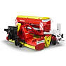 Med indbygget hejsemekanisme, roterende trykvalse, en sædbeholder, der kan åbnes, udløbsventil og trapper, der kan foldes ud.