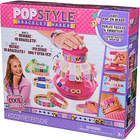 Med Cool Maker Popstyle Armbåndssæt kan du lave dine egne armbånd og udfolde dit barns kreativitet. Med denne kan børn sætte farver og former sammen, så de bliver til det helt perfekte smykke, som de kan vise frem. Dette armbåndssæt har et nemt perlesystem, hvor perlerne let kan trykkes på uden man skal binde knuder eller klippe snore. Der kan laves 10 unikke armbånd med dette sæt og der er 170 flotte perler at vælge i mellem. Derudover er der et opbevaringsrum, så perlerne ikke bliver blandet sammen.