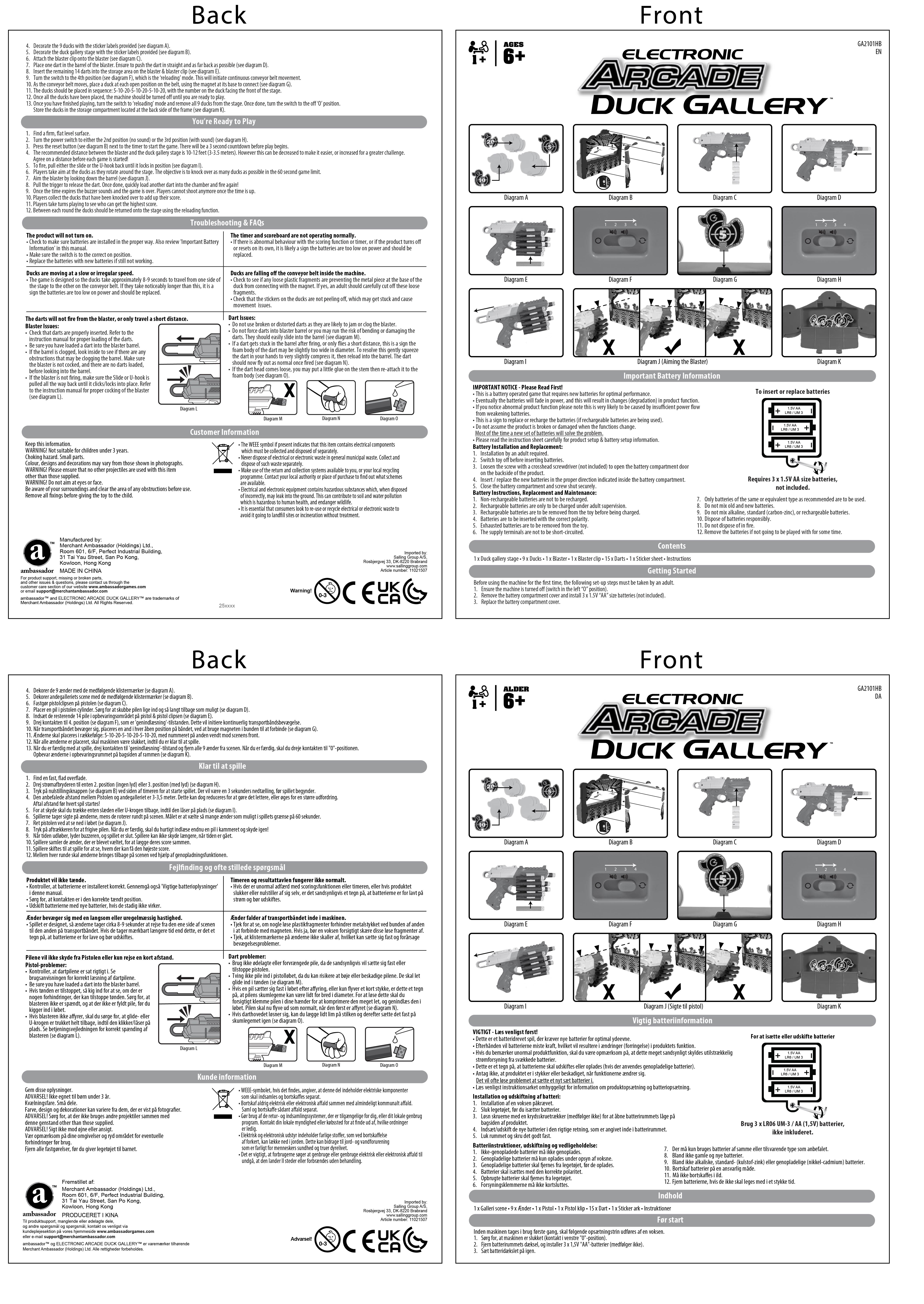 Karnevalsmusik og ande-kvaklyde bidrager til atmosfæren, mens den klare LED-timer viser, hvor meget tid der er tilbage. Når du er færdig, skal du samle ænderne og tælle din score. Sæt ænderne tilbage på båndet, så er du klar til at spille igen - alle kan skiftes til at forsøge at sætte en ny rekord! Kommer klar til at spille med en blaster og darts.