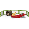 Løvehovedkaninen og hendes to unger føler sig meget hjemme i kaninburet.